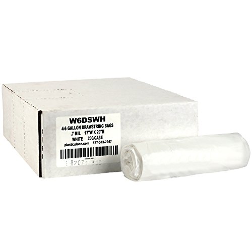 Plasticplace 4 - 6 Gallon White Drawstring Bags, 100% Prime Material, 17x20, 0.7 Mil, 200/Case