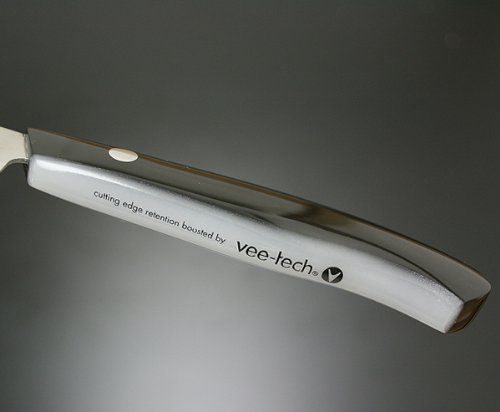 「vee-tech」서는 항공 우주 엔지니어링 기술로서 개발 된신 가공법으로,칼끝을 칼날용 강재부터 초경질 입자 으로 서서히 변화 시키고 있습니다.사용하는 것에 새로운 입자가 칼끝에 출현하고, 날카로운 칼이 드는 정도가 자생 하는 효과를 가져오고, 종래의 칼날에 없는 경이적인 칼이 드는 정도와 인소유의 좋은 점을 실현 하고 있습니다.