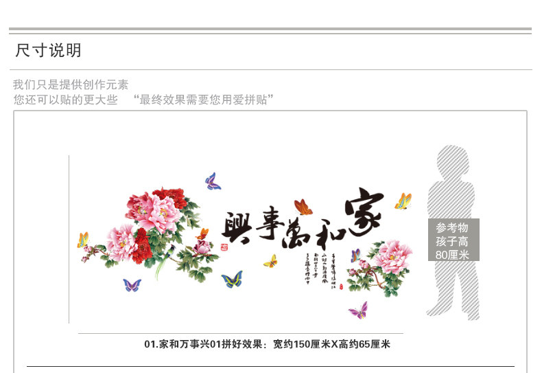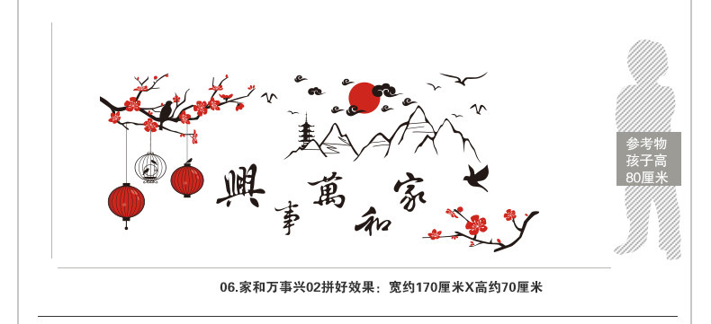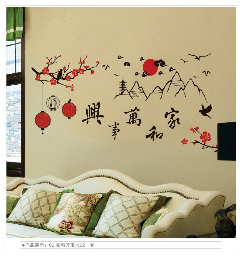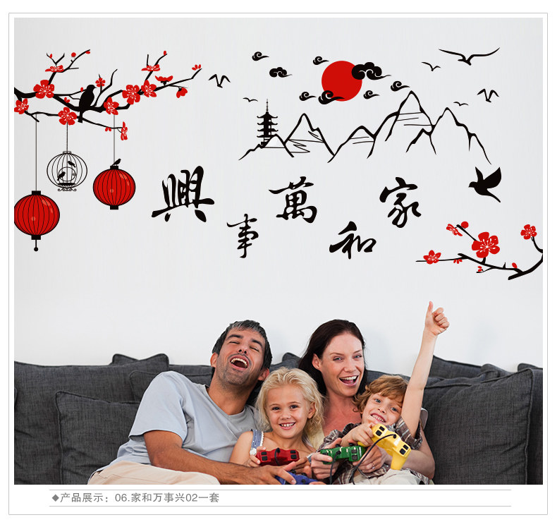 家和万事兴中国风墙壁装饰墙贴画客厅沙发电视背景贴纸文字励志贴