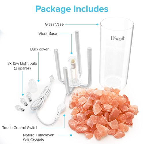 Touch-Controlled Dimmable Lighting: Levoit Himalayan salt lamps offer safe and patented touch controlled lighting for an enjoyable user experience; simply press and hold the touch control to adjust the lamp's brightness - it’s fun! 1 Year Limited Warranty: FCC, CE, RoHS Approved. Extra two Replacement Bulbs included.