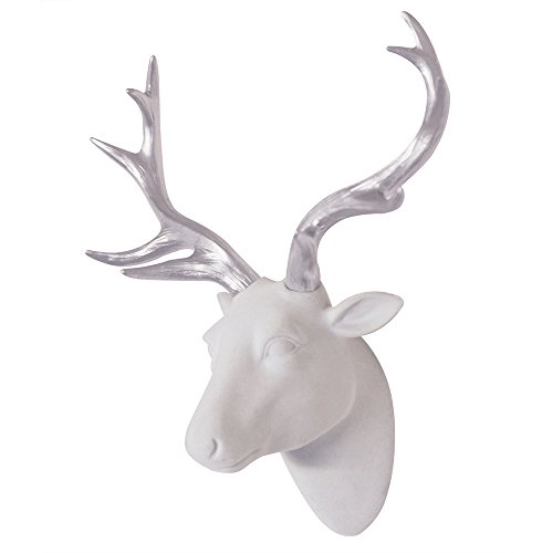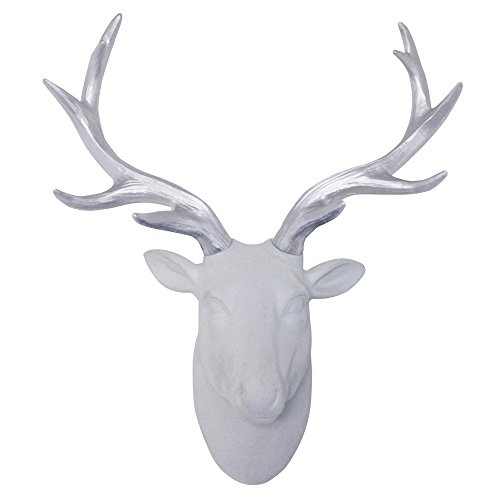 Deer Head Wall Art White Flocking Deer Head With Silver Antlers Wall Decor Size 10" x 12" x 5.5" by Smarten Arts