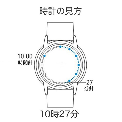 터치 스크린에 닿으면 시각을 LED의 점등으로 표시하는 최신형 손목시계로,평상시는 케이스 주위의 LED는 소등해 있습니다만 터치 스크린을 1 초중인방하며하면 LED가 빛나 현재 시각을 가르쳐 줍니다.외형이 기발한디자인나와 언뜻 보기에 어떻게 해 시간을 아는 것인지 이상한 시계 (이므로)그래서 (이므로)그래서 회식이나 미팅 등으로도 불가사의해져 주목을 집중시키는 아이템으로서의 이용도 기대에 옵니다.