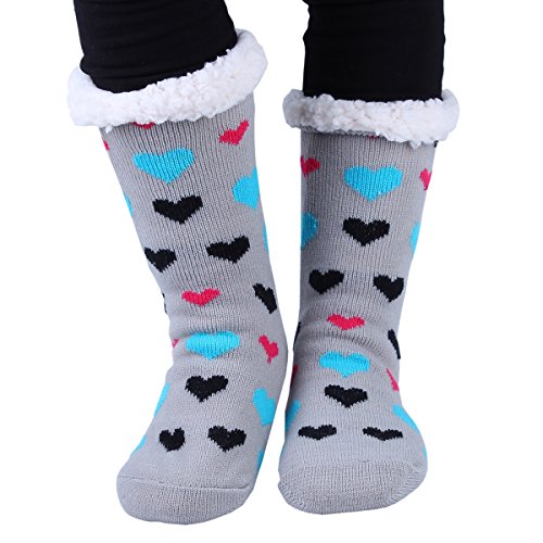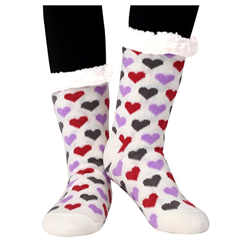 -. Binding : Apparel -. Brand : Marlong -. Department : womens -. Feature : One Size suitable for Women US Size 6 to 10 / ULTRA SOFT: knitted Slipper Socks are made to provide you with the comfiest and soothing crew socks you can find! Each pair is made from high quality and ultra-soft fleece and lined with the double thick layer of Sherpa fur to make it fluffy, fun and warms making it perfect for use in the winters and fall to provide you with unmatched comfort! / PRACTICAL & FUN: Our Furry cute socks are designed for anyone that likes to keep their feet comfy and warm while having fun with their apparel. These knitted socks look absolutely adorable and go perfectly with all kinds of clothes - perfect for indoor and outdoor use. These are guaranteed to put a smile on anyone's face! / WARM & BREATHABLE: Our knitted socks are made of superior quality and ultra-soft premium material that is hand selected to ensure high breathability along with Sherpa fur that is both warm and resistant to wear. These breathable adorable slipper socks keep the warmth enclosed in the sock to keep you comfortable and cozy while ensuring that you and everyone else has a good fun time. -. IsAdultProduct : 0 -. ProductGroup : Apparel -. ProductTypeName : SOCKSHOSIERY -. Title : Marlong Women Sherpa Heart Deer Lined Knit Festive Winter Warm Soft Non-slip Fleece Slipper Socks