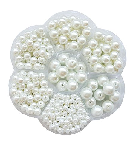 400+pcs Luster Glass Pearl Round Beads Assorted Sizes Lot / Jewelry Making Beads (White)