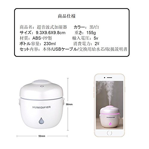 원본상품명: 加器 卓上 アロマ 超音波式 音 7色換LED搭載 ミニ加器 USB ペットボトル 空焚き防止 230ml スチム 除菌 部屋 社 ヨガなど各場所用