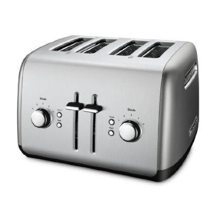 An attractive and functional addition to any countertop, the Kitchen Aid 4-Slice Toaster offers a variety of functions for everyday use. Toast bread to your desired shade, precisely toast the cut sides of bagels, defrost and toast frozen food or reheat previously toasted food in under a minute. Plus, a high lift lever makes it easy to remove whatever you''re toasting.