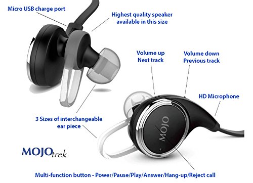 Wireless Earbuds by MOJOTrek - Seriously UPGRADED Stereo In-Ear Headphones - Headset with APT-X Mic for all iPhone, Android, and Bluetooth Devices - iPhone 7 Ear Buds - Bluetooth v4.1