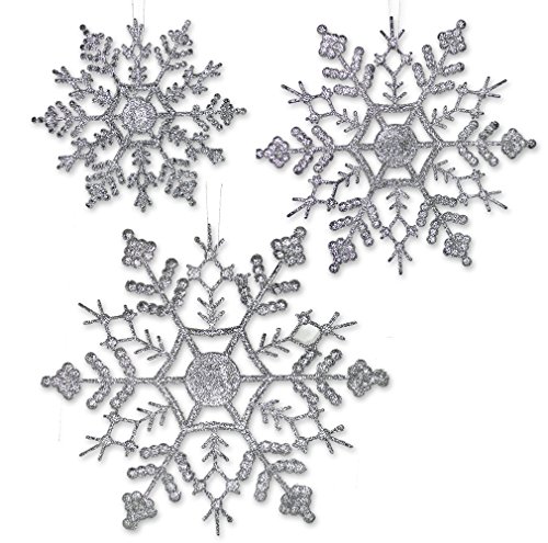 - SILVER GLITTER HANGING SNOWFLAKES. 36 assorted sizes glitter snowflakes.