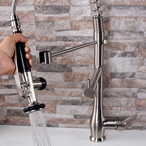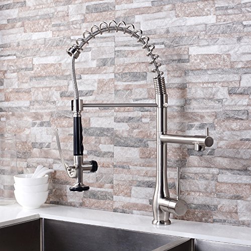 GhomeG Single Handle Pull Down Spray Kitchen Faucet Commercial Style Pre-rinse with Lock Sprayer, Brushed Nickel