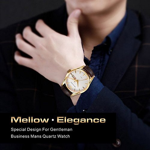 -. Feature : CLASSIC GOLD WATCH for MEN:gold case,gold adjuster,gold watch hands and marks on a minimalist white dial form a charming classic look,the strong mineral screen glass,a date-day window at 3,Italy brown leather band adds more classic elements. / OUTSTANDING QUALITY: stern Japan movement keeps time precise,fancy Italy breath leather bands,aluminum alloy steel case making the watch tough and substantial,strong mineral screen glass,scientific appropriate size for men(band and whole watch).We send each watch to the quality control center to make sure that every art from BRIGADA is perfect before sending to FBA.2 year unlimited warranty for any problem if exist! / CONCISE but CAREFUL WORKMANSHIP ART: 11 gold stick marks and a BRIGADA logo on a pure frosted white dial,golden-section hour hand and minute hand,strong mineral screen glass preventing scratching from your keys or else,no need manual winding quartz movement,exquisite adjuster,every detail is considered. / 5ATM WATER RESISTANT: suitable for daily use and also anti-corrosion. 40mm diameter 12mm thickness,1.2mm bezel. / BRIGADA men's watch,men's concise but solemn feelings.