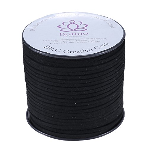 BoRuo Micro-Fiber Flat Leather Lace Beading Thread Faux Suede Cord String Velet 100 Yard Roll Spool 3mm Black Color with Acrylic Jar