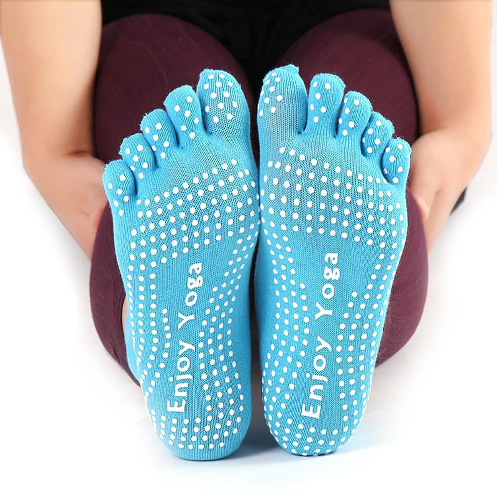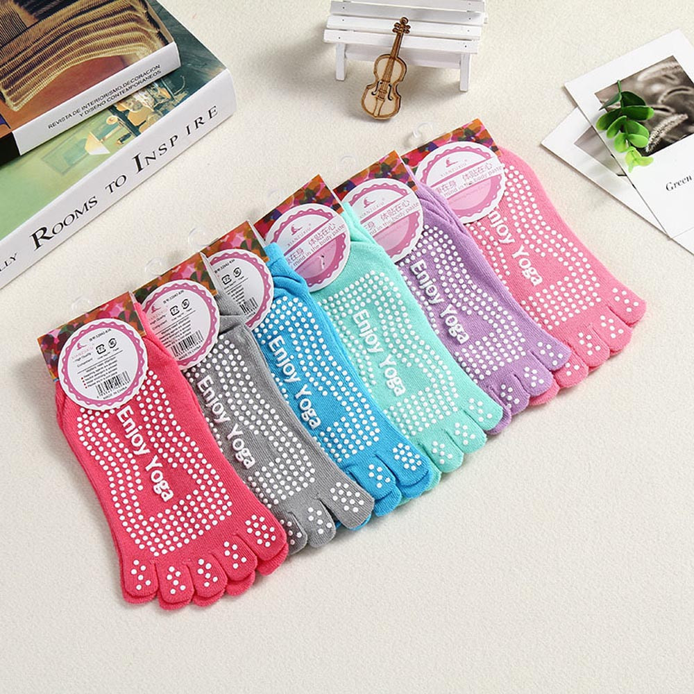 1Pair Womens Cotton Colorful Yoga Gym Non Slip Massage Toe Socks Full Grip With Socks Heel (without retail package)