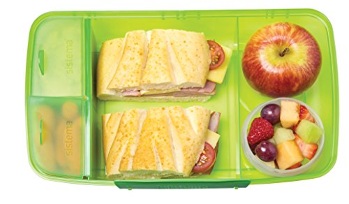 Features Sistema KLIP IT easy locking clips; flexible inner seal allows food to stay fresh longer; keeps lunch and snacks separated, fresh until ready to eat