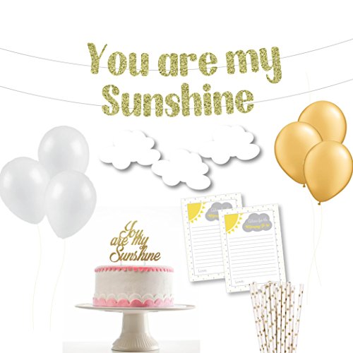 You Are My Sunshine Cake Topper Party Package with Banner Cake Topper Confetti Balloons (with advice cards)