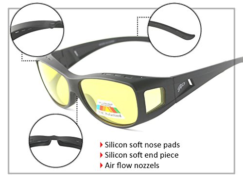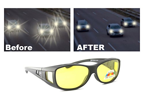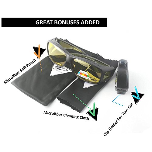 -. Feature : • FITS ON TOP OF REGULAR GLASSES: With the GREAT PICK FIT OVER NIGHT VISION GLASSES .You can put them over most Medium prescription glasses and take them off instantly . Included a microfiber drawstring pouch, soft cleaning cloth & special car holder clip to keep safe of your sunglasses or eyeglasses in the car . / • QUALITY DESIGNER LOOK: Look stylish in these all plastic frames and lenses glasses that are designed for men or women with a trendy look; the imported GREAT PICK FIT OVER NIGHT DRIVING GLASSES are Yellow polarized lenses To ensure Night Driving SAFETY ! It will improve your night vision , will reduce glare of car lights and especially will help you on rainy or foggy nights . / -This GREAT product available in one color frame black mat and with yellow polarized lenses the two arms that go over the ears have slip guards end piece, the bridge has silicone nose pads and the frame designed with nozzels to allow air flow and prevent fogging . with these sunglasses that fit over regular glasses, your glasses will not scratch or get dirty quickly. So Many advantges at such low price . / • FREE BONUSES ADDED: Each pair of GREAT PICK FIT OVER NIGHT VISION GLASSES comes with a black drawstring microfiber carry bag so they will not get scratched or damaged when not wearing; also added are a soft cloth for keeping your lenses clean and Special Valuable car holder clip to keep safe of your sunglasses or eyeglasses in the car / • SATISFACTION GUARANTEE: We strive to provide you with quality product and the best customer experience possible; if you're not entirely satisfied, please contact us immediately to rectify the problem; click Add To Cart now and enjoy your GREAT PICK FIT OVER NIGHT VISION GLASSES and get the included pouch, cloth, and car Sunglasses holder clip FREE;