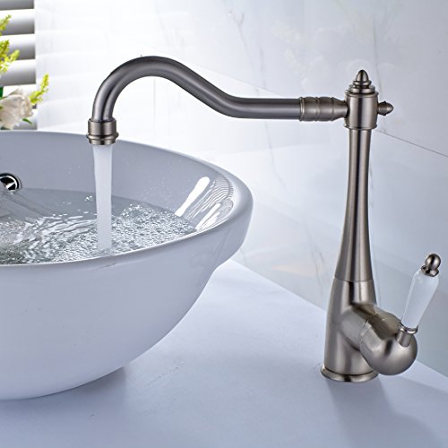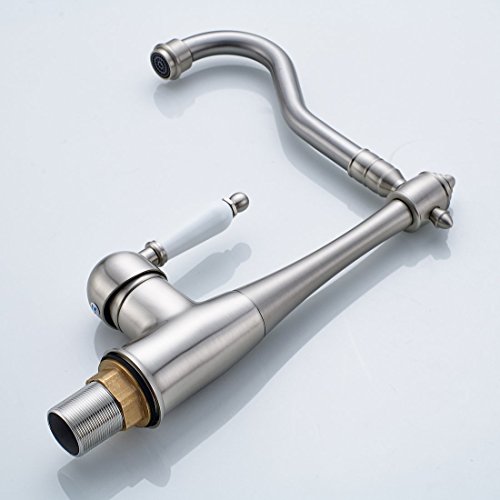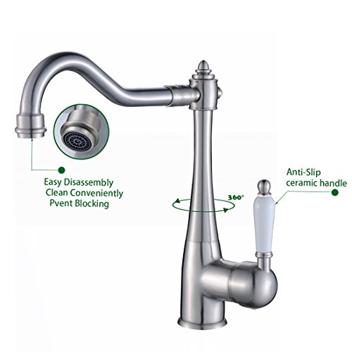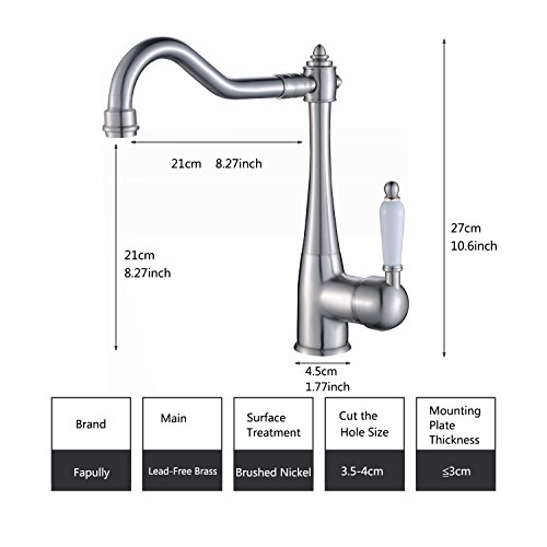 Fapully Best Commercial Brushed Nickel Soild Brass Single Handle Kitchen Sink Faucet, Single Lever Swivel Spout Kitchen Faucets