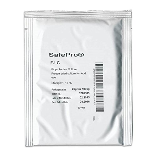 Due to the limited shelf life outside of a freezer, we can not ship this outside of North America. A patented bioprotective culture of bacterial strains which protect the sausage product from Listeria contamination while being a versatile and effective culture for acidification. Can be used for slow, traditional fermentation when environment is near 80F and will also rapidly acidify in high fermentation (US Style) temperatures of near 115F. 25grams for 100 kg of meat. • Net Weight: 25g(per packet) • Usage: 25g for 100kg(220 lbs) • Instructions for making 10 lb. increments included. • Storage: In Freezer (<2°F) • Freeze Dried Culture. For Food Use Only. Not Intended For Medicinal Purposes.Feature