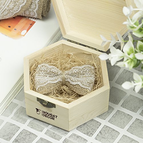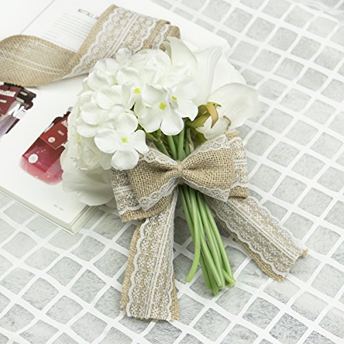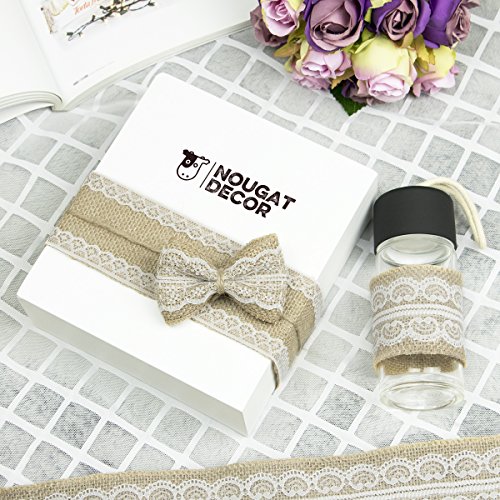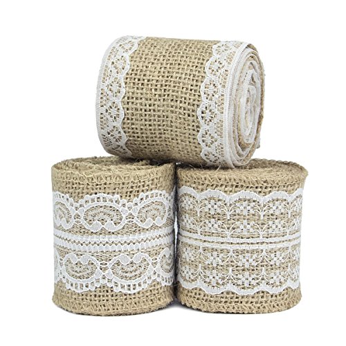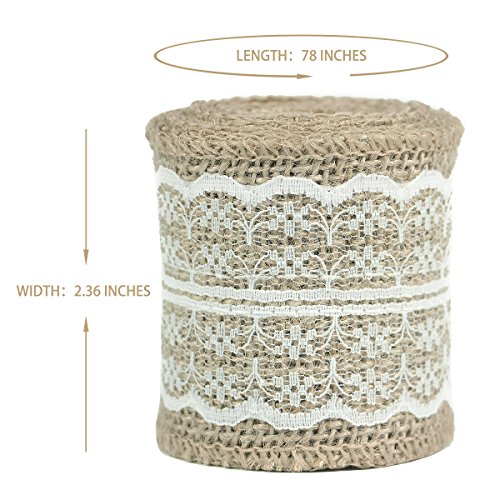 Nougat Decor Natural Burlap Ribbon with White Lace Trims, 6 Rolls/ Package, 78 Inches x 2.3 Inches Each