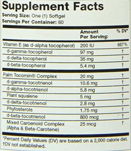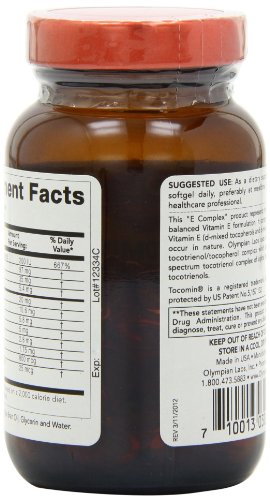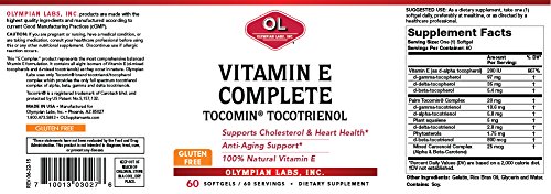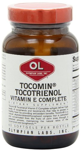 -. Binding : Health and Beauty -. Brand : Olympian Labs -. EAN : 0710013030276 -. Feature : Excellent source of vitamin E / Deliver high levels of tocopherols and tocotrienols that protect the cardiovascular system / Contains d-alpha tocopherol, excellent in its antioxidant and heart support properties -. IsAdultProduct : 0 -. IsAutographed : 0 -. IsMemorabilia : 0 -. Label : Olympian Labs -. LegalDisclaimer : * These statements have not been evaluated by the Food and Drug Administration. This product is not intended to diagnose, treat, cure or prevent any disease. ** Always refer to the manufacturer's label on the product for description, recommended dose and precautions. -. Manufacturer : Olympian Labs -. Model : OYL30276 -. MPN : 0385534 -. NumberOfItems : 1 -. PackageQuantity : 1 -. PartNumber : 0385534 -. ProductGroup : Health and Beauty -. ProductTypeName : HEALTH_PERSONAL_CARE -. Publisher : Olympian Labs -. ReleaseDate : 2007-08-10 -. Size : 60 -. Studio : Olympian Labs -. Title : Olympian Labs Tocomin Tocotrienol Vitamin E Complete, 60 Softgels -. UPC : 710013030276