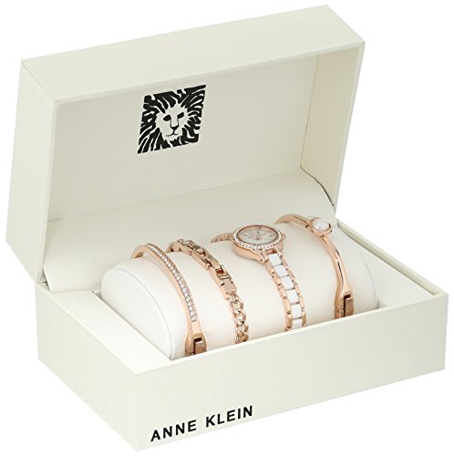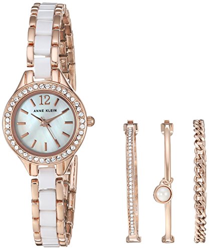 Anne Klein Women's AK/1954RGST Swarovski Crystal Accented Rose Gold-Tone and White Ceramic Watch and Bracelet Set