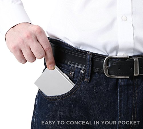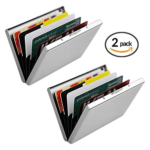 [Description] SUPER SLEEK_ STYLISH_ AND STURDY - You get 2 Classic High Quality Credit Card Holders with Smooth Stainless Steel and Solid Construction that was Built to Last. You``ll love the feel_ the looks_ and the durability...so will everyone else who sees it!e the feel_ the looks_ and the durability...so will everyone else who sees it! ULTRA SLIM AND PORTABLE - Six sleeves firmly hold your Credit Cards_ Debit Cards_ Driver``s License_ ID Cards_ and other credit card size cards. Maximum Capacity: 7 cards (with 2 of the cards in one slot) or 6 cards + 3 folded bills. Small enough to keep hidden in your front pocket or purse - just half an inch thick! Perfect for Business_ Travel_ Shopping_ and Daily Use. ULTIMATE CARD PROTECTION - Enjoy peace of mind knowing your Cards and Identity are Safe and Secure. Accordion-style display fits cards securely like a glove_ while the sturdy metal case ensures your cards with RFID (Radio Frequency Identification) chip technology are fully protected from RFID-scanning thieves.