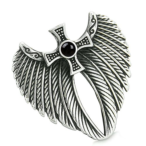 -. Binding : Jewelry -. Brand : BestAmulets -. Color : Black -. Department : womens -. Feature : Best Amulets® Collection. Very Unique and Special Double Angel Wings and Celtic Viking Cross Amulet. / Amulet Size: 35mm X 35mm / Amulet is Made from Stainless Steel and holds Cute Cabochon. / Ready to Wear with Very Popular Stainless Steel Link Style 18 Inch Chain Necklace / Comes with Gift Kind Packaging -. Label : BestAmulets -. Manufacturer : BestAmulets -. Model : AMG-ANGEL1 -. MPN : AMG-ANGEL1 -. PartNumber : AMG-ANGEL1 -. ProductGroup : Jewelry -. ProductTypeName : FASHIONNECKLACEBRACELETANKLET -. Publisher : BestAmulets -. Studio : BestAmulets -. Title : Angel Wings Celtic Viking Cross Magic Powers Amulet Simulated Black Onyx Pendant 18 inch Necklace