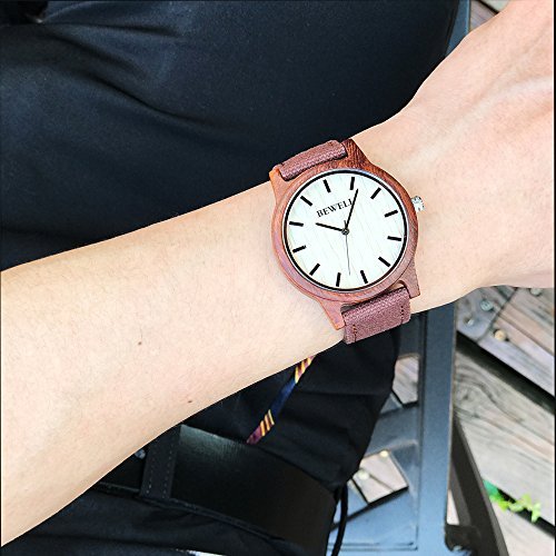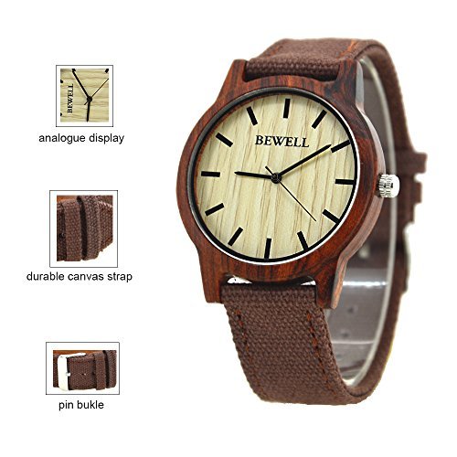 Bewell Men's Wood Watch with Japan Movement Fashion Design Watch and LED Light Display Wooden Watch