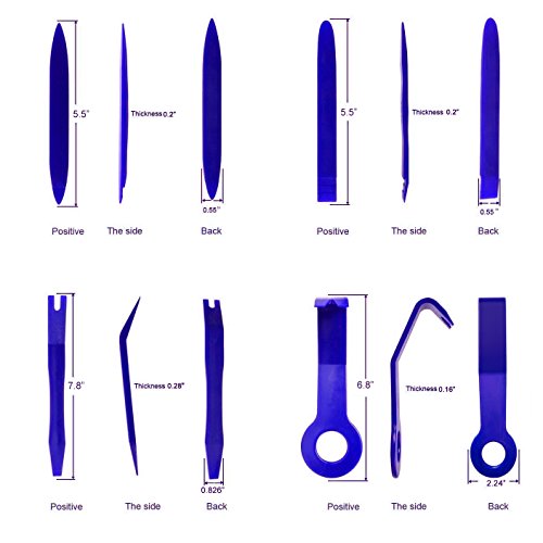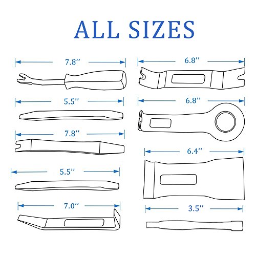 PACKAGE CONTENTS: Come with 9pcs different kinds of trimming tools, includes 7 pieces plastic blue panel removal tool and 1 piece blue fastener remover and 1 pieces blue mini line install tool . Offer a bag and box for easy carrying.