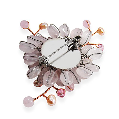 -. Feature : Marterial: Copper jewelry wire, Stainless steel metal / Stone: Crystal, Cultured freshwater pink pearl (dyed), Colored glass / Design Measurement: 60 mm (2.36 in) at widest x 62 mm (2.44 in) long / Style: Pin/Brooch | Pearl Grade: B-C / Color: Pink | Weight: 14.6 grams