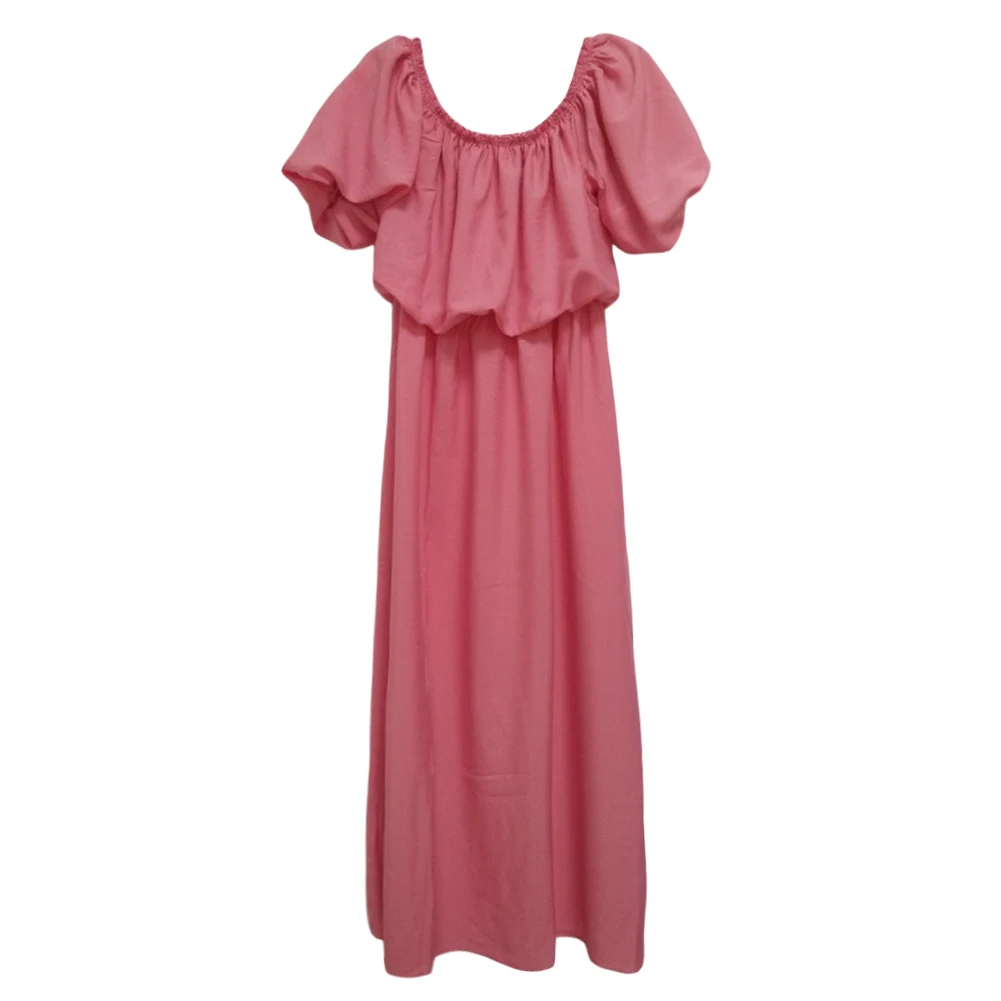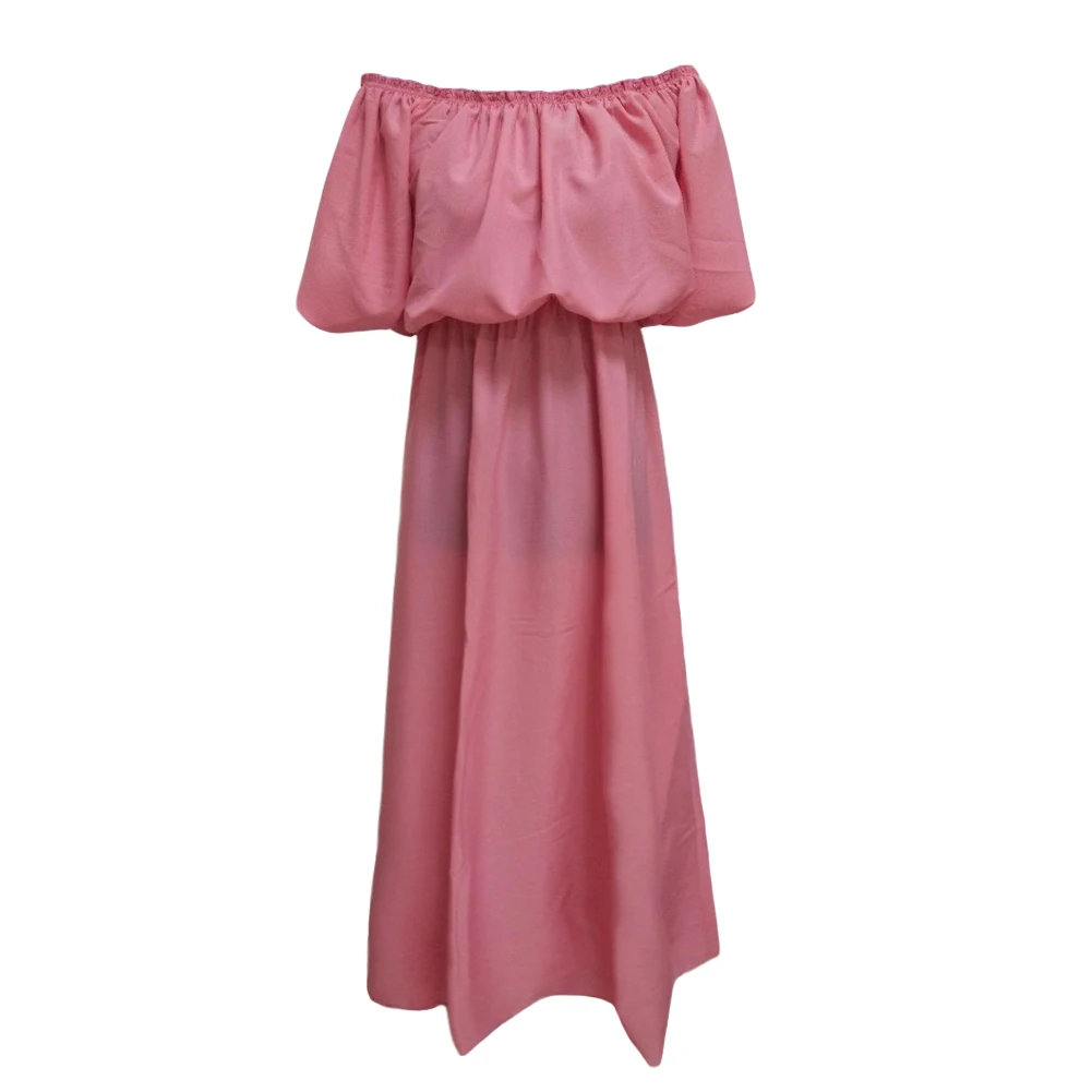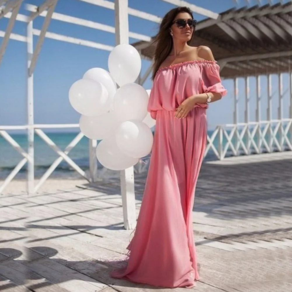 2017夏シフォンマキシドレスプラスサイズの女性服オフをショルダーロングドレス傲慢ネックローブフェムセクシーピンクvestidos mujer