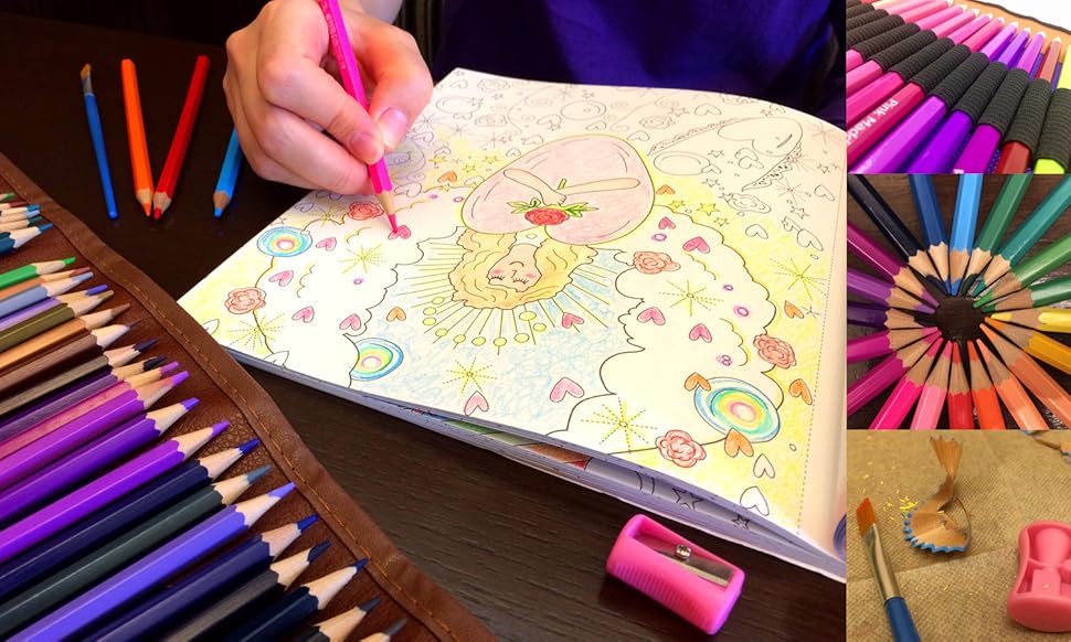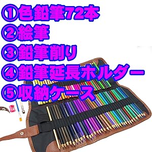 Fuerzon 水溶性72色鉛筆 塗り絵 絵の具 携帯便利 収納ケース付き 鉛筆削り付き 鉛筆延長ホルダー付き プレゼント