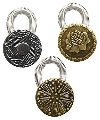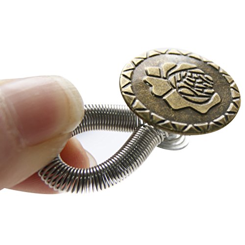HIGH QUALITY - The no sew elastic spring brass metal pant extender is made of high quality metal, and this button extender stretches as you need it for the most comfortable fit. Each pack includes 12 high-quality metal jeans collar extenders.