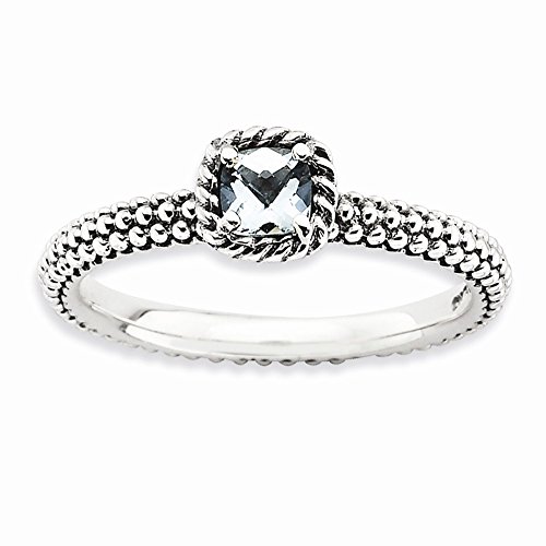 -. Title : Stackable Expressions Sterling Silver Checker-Cut Simulated Aquamarine Antiqued Ring