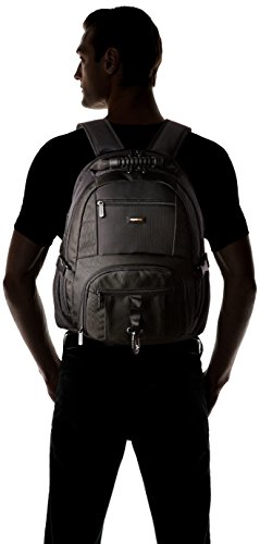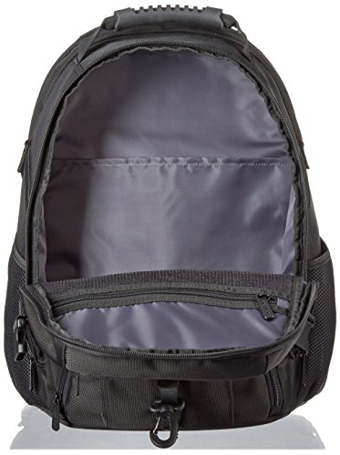 -. Feature : Lightweight yet durable multi-compartment backpack - ideal for work, travel, or school / Fits most 15-inch laptops; separate padded laptop compartment with top velcro strap to keep laptop in place / Front pocket organizer with eight sections for keys, pens/pencils, a cell phone, and more / Padded shoulder straps and back padding offer extra back support and comfort; top loop handle for a secure hold when picking up or moving the backpack / Front carabiner clip; external water-bottle pouches; secure strap for sunglasses / Capacity: 1626 cubic inches/ 26.6 liters