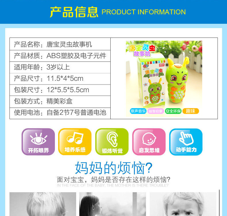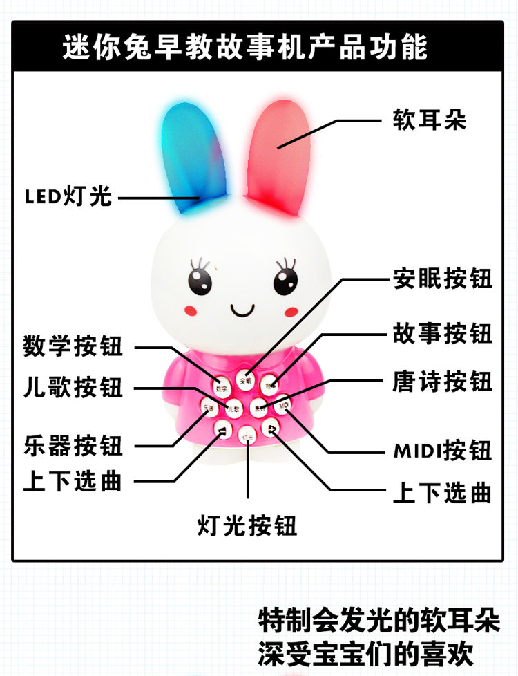 特别说明:故事机全新升级 不同批次的音乐内容可能会有一点不同 音乐都是小宝宝喜欢的 故事机使用7号电池(请勿使用南孚电池,其他都可以)介意的慎拍