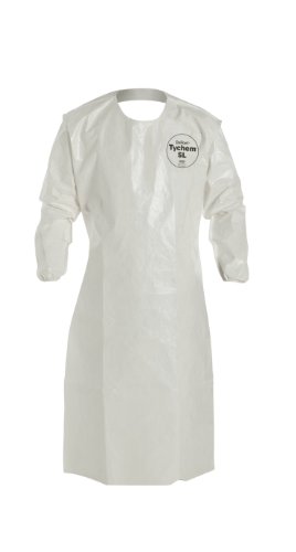 DuPont Tychem 4000 SL278B Sleeved Apron with Bound Seams, Disposable, Elastic Cuff, Universal Size, White (Pack of 12)