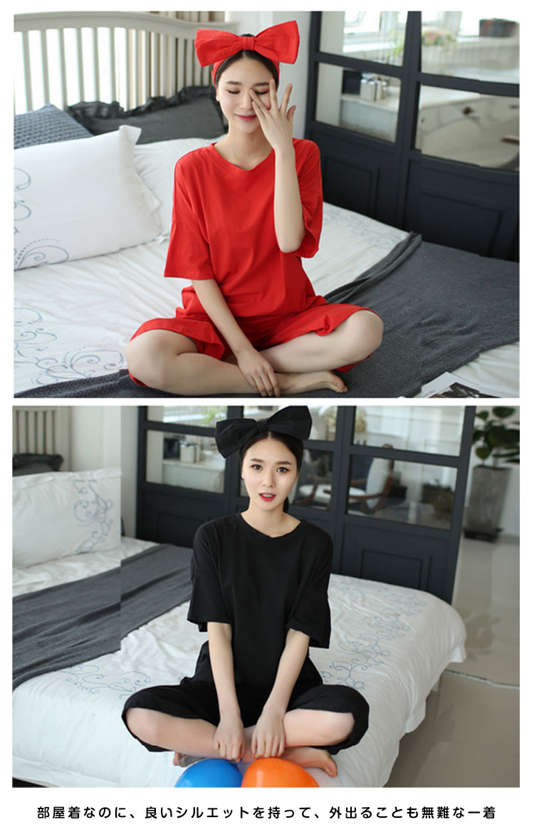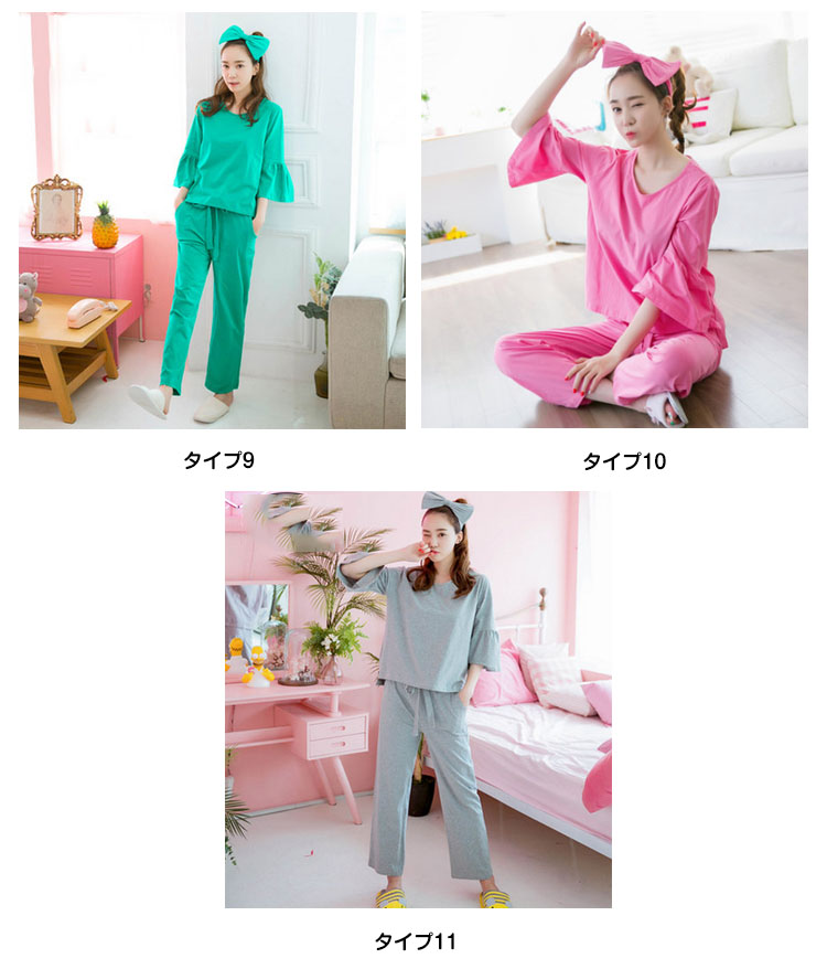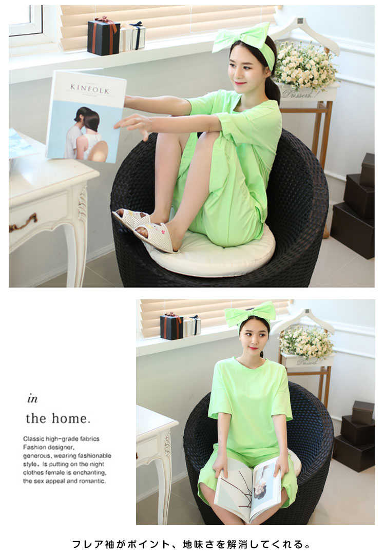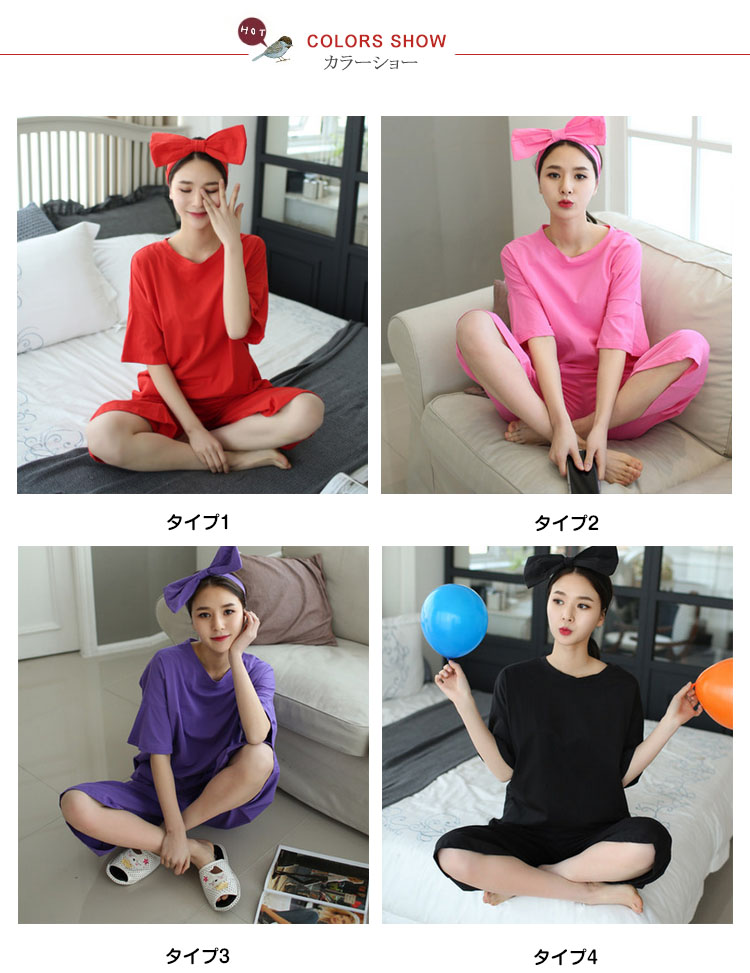 | 二タイプがあって、春夏に選び放題のルームウェアカチューシャが付いて、キュートで活発に見える。フレア袖がポイント、地味さを解消してくれる。吸汗性と透湿性に優れたコットン生地で、着心地が良い。部屋着なのに、良いシルエットを持って、外出ることも無難な一着 | |