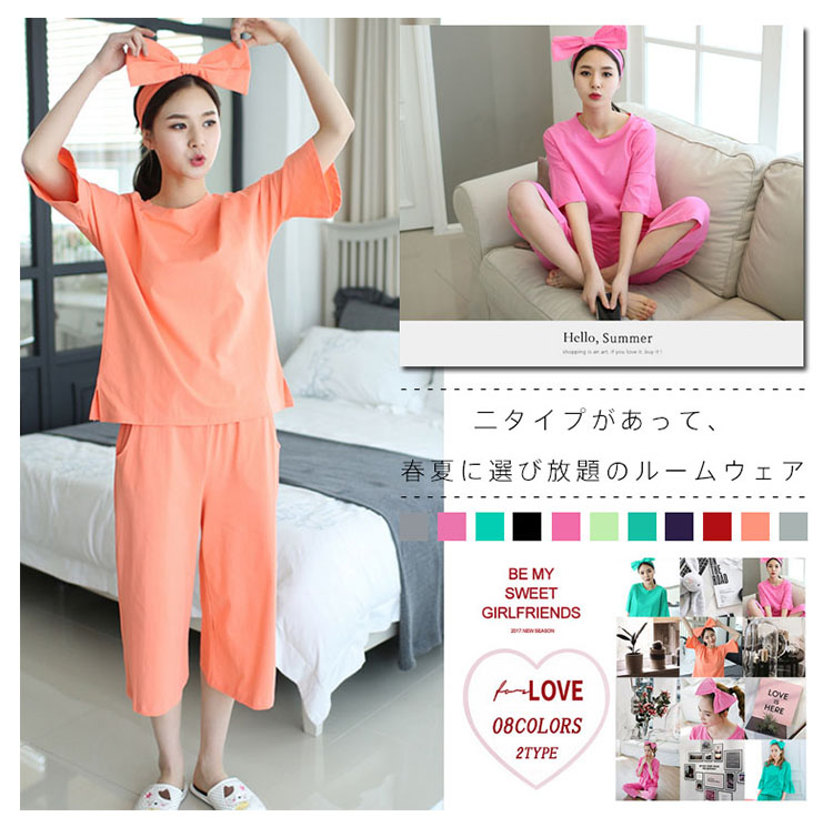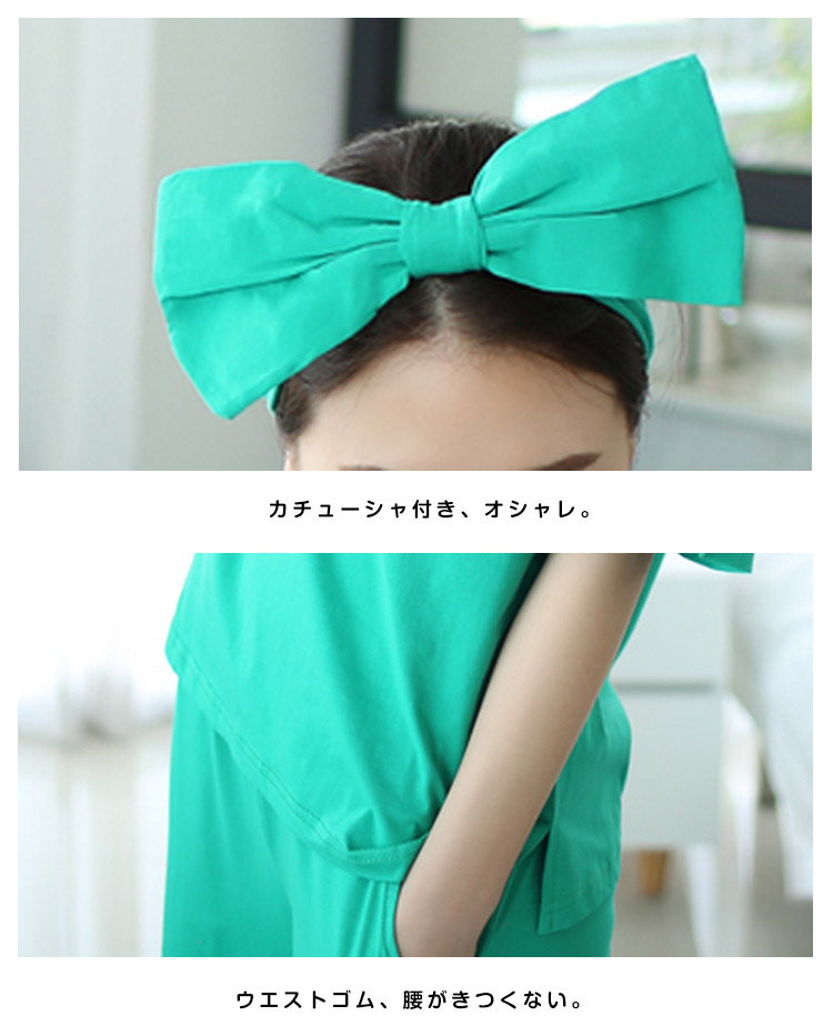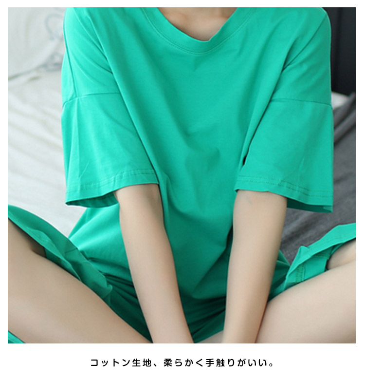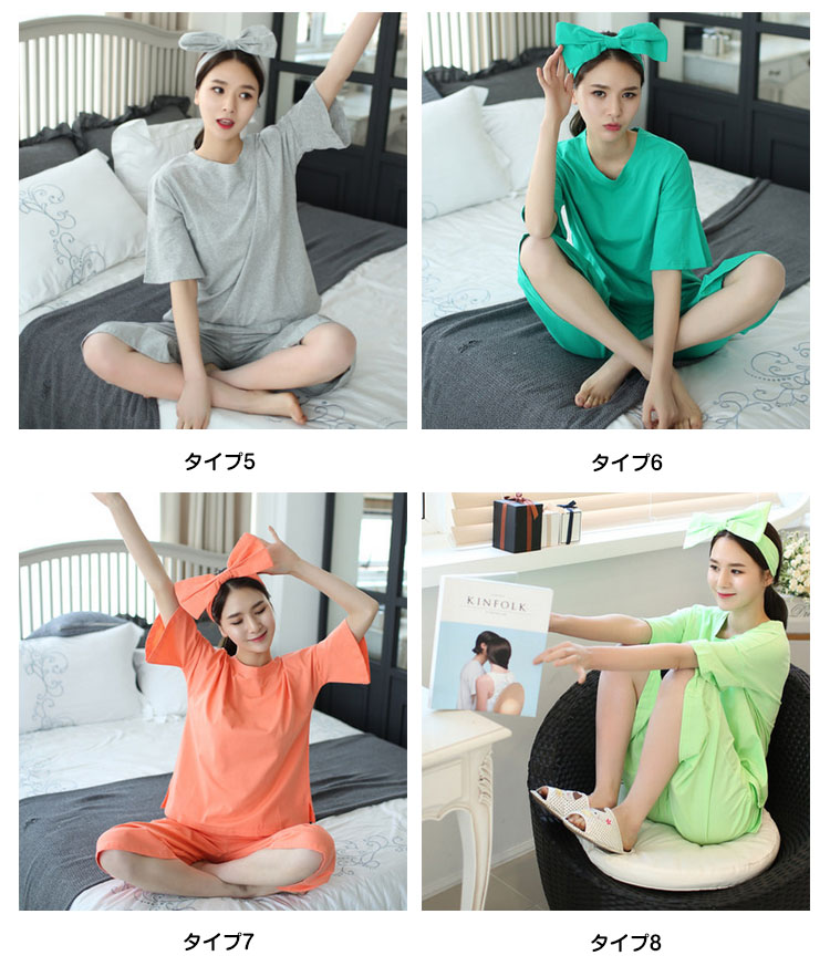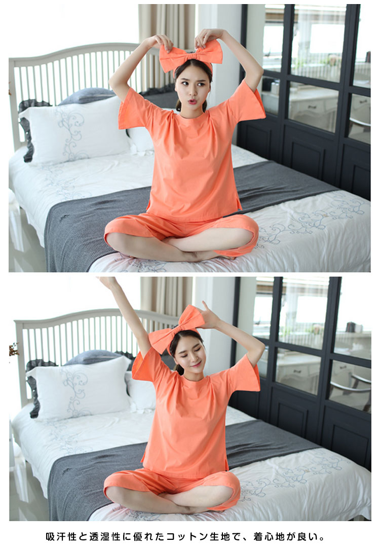 | 二タイプがあって、春夏に選び放題のルームウェアカチューシャが付いて、キュートで活発に見える。フレア袖がポイント、地味さを解消してくれる。吸汗性と透湿性に優れたコットン生地で、着心地が良い。部屋着なのに、良いシルエットを持って、外出ることも無難な一着 | |