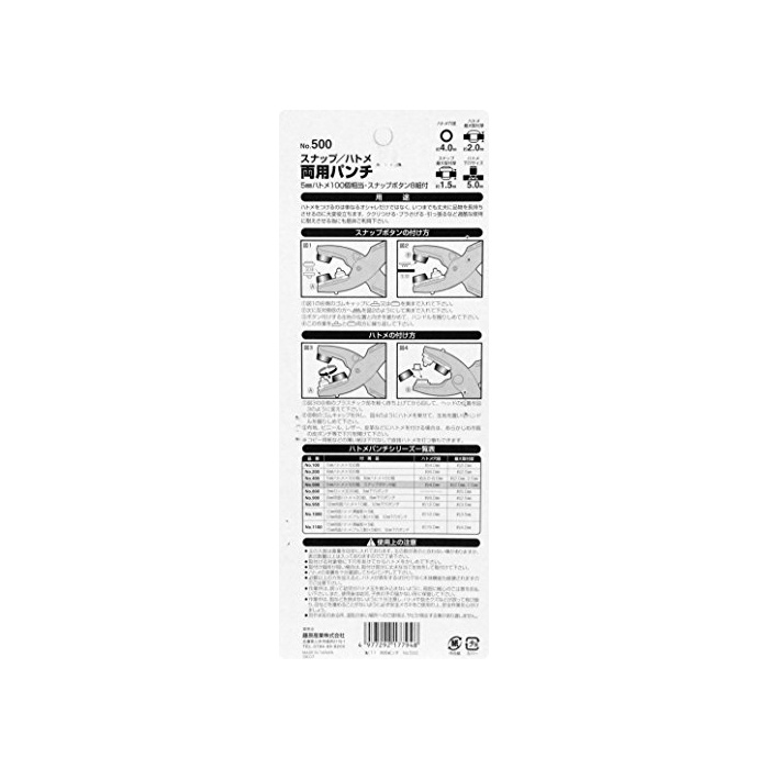 원본상품명:SK11 スナップハトメ用パンチ ハトメ穴約4.0mm No.500