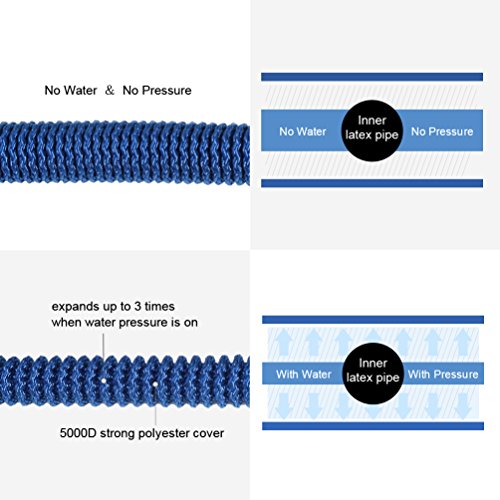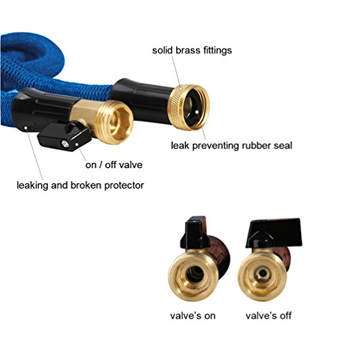 SIMPLE & EFFICIENT MANEUVER - The light weight, flexibility and 3 times expanding length enable you to maneuver the garden hose more easily even when full of water. The valve connected can avoid unnecessary rush to close the faucet after cleaning