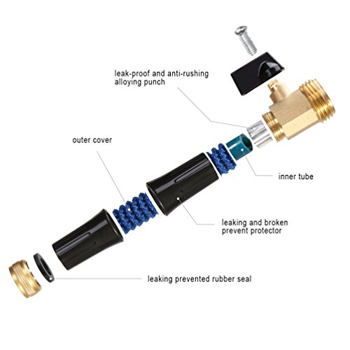 LEAKING & BROKEN PROTECTOR - The plastic tail in the latest design is the protector. With the solid brass fittings and plastic tail, the garden hose can be protected from leaking and bursting when it is in use