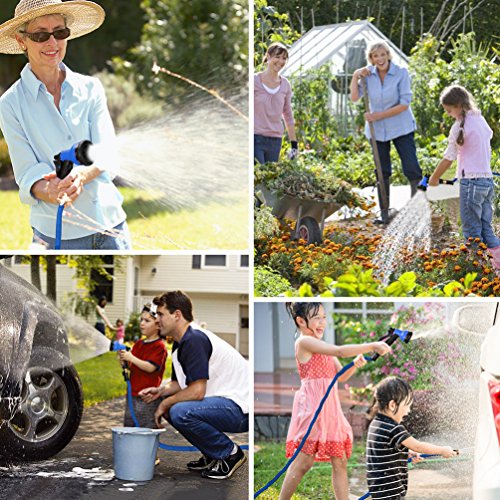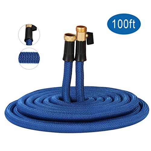 Hongmai 100ft Expandable Garden Hose -New Water Hose for All Watering Needs, Heavy Duty Leakproof Connector& Double Latex Core& Extra Strength Fabric Protection - Flexible Watering Hose (Blue)