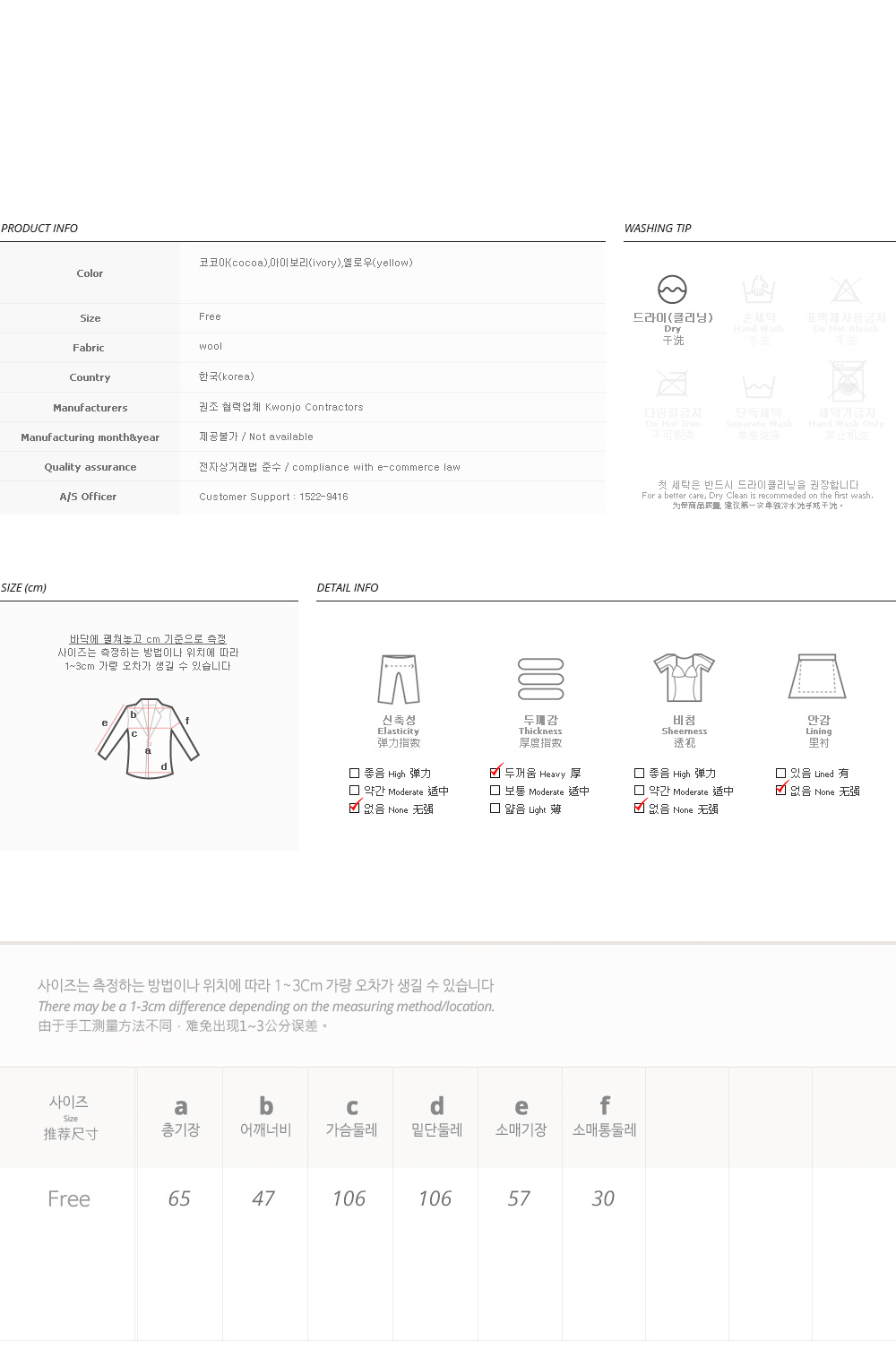 피팅 컬러와 사이즈는 코코아,아이보리,Free입니다
