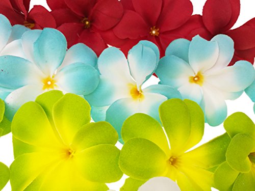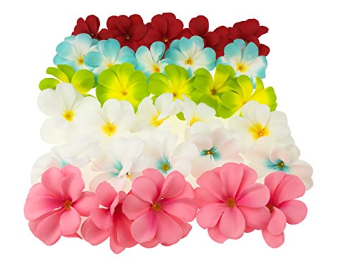 Pack of 50 Mixed Artificial Silk Flower Plumeria Frangipani Heads 2.8 inch for Wedding Garland DIY Jewelry Accessories