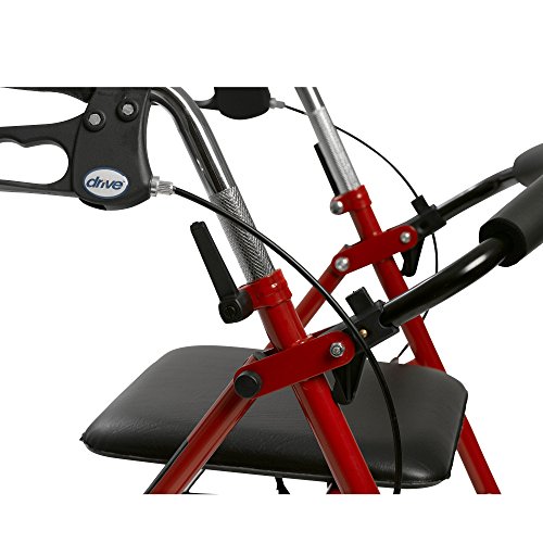 Rollators are better for traveling over uneven, outdoor terrain, making them great for your active, busy lifestyle. And with the built-in padded seat with backrest, you’ll always have a convenient place to rest. The backrest can be folded up for a more compact rollator when folded or be completely removed with the brass push button release. The large, removable basket is perfect for carrying your personal items when you’re on the go. The 7.5" casters are non-marring so they do not leave black scuff marks on your floor. It’s designed and built for maximum comfort, durability and ease of use with quick folding ability. The handle height is easily adjustable with a twist of the lever and can be locked into place so you have the proper posture when walking. Deluxe loop locks are easy to use and can be pulled towards you when breaks are needed when walking. Just push the locks down before you wish to sit on the rollator to lock the unit into place. Enhance your mobility—and your quality of life—with a Rollator from Drive.