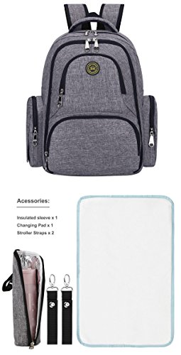 Imyth, grosser Windel-Rucksack fur unterwegs, wasserdicht, mit Wickelunterlage und Befestigungshaken fur den Kinderwagen