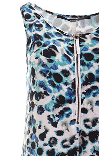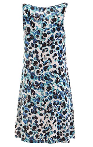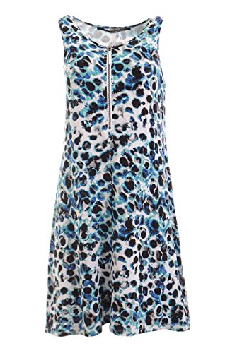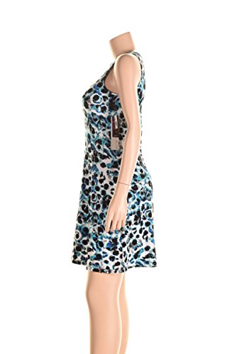 This dress by Kensie features print allover, scoop neckline, zipper at front, sleeveless, a-line silhouette, no linng.
