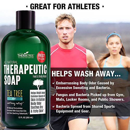-. Feature : ORGANIC & NATURAL INGREDIENTS (NO HARMFUL CHEMICALS!!!) NO Preservatives, Thickeners, Detergents, Petroleum, Silicone, Synthetic Fragrance or Dyes. / CONCENTRATED VALUE SIZE - Rich Foaming Action and Concentrated Liquid Solution Formula Means a Little Goes a Long Way. Gentle Enough for Daily Use. Ideal for Athletes. Can be Used as an Effective Foot Soak. / STRONG DEFENSE - Helps Wash Away and Defend Against Fungus & Bacteria Responsible for Body Odor, Athlete's Foot, Ringworm, Jock Itch, Acne, Toenail & Nail Fungus, Yeast, and other Common Foot, Back, Chest, Butt and Skin Irritation. Ideal for Smelly Feet and Body Odor Eliminator. / SOOTHES ITCHY, SCRATCHY, DRY, INFLAMMED SKIN - Infused with Nourishing Botanicals Rich in Skin Moisturizing Omegas 3, 6, 7 & 9. Scented with Cooling Mixed Mint Essential Oil Which Invigorates and Smells Wonderful. Soothing Body Wash For Men and Women. / BROAD SPECTRUM - Enriched with Tea Tree Essential Oil, Broad Spectrum Essential Oils, and Antibacterial Extracts Including Neem Oil that have been used for centuries for Skin Discomfort, Oleavine Soap helps provide relief.