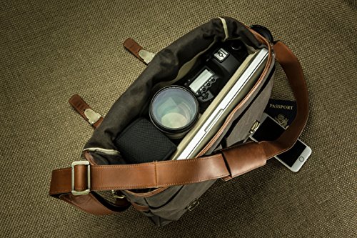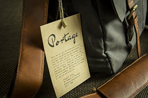 -. Binding : Electronics -. Brand : Portage Supply Co. -. Color : Charcoal -. EAN : 0799207052331 -. Feature : Handcrafted with premium waxed canvas, a vintage method of waterproofing used by mariners as early as the 1600's. / Secure antique brass tuck-clasp closure keeps your valuable contents safe / 100% Genuine Oil Pull leather - has a vintage look and can have dark areas that will change as the leather wears. Oil pull leather is coveted for its resilience and self healing nature. It ages beautifully over time. / Side weather flaps to protect your gear. Internal dividers are removable, and are padded for protection of your items. / Room for a camera, two lenses, 13" laptop or tablet, surface, or iPad. Large enough for most professional lenses. Also available in 15" size in a separate product listing! -. Label : Portage Supply Co. -. Manufacturer : Portage Supply Co. -. Model : BC28262 -. MPN : BC28262 -. PackageQuantity : 1 -. PartNumber : BC28262 -. ProductGroup : Personal Computer -. ProductTypeName : CARRYING_CASE_OR_BAG -. Publisher : Portage Supply Co. -. Studio : Portage Supply Co. -. Title : Portage Supply Spruce, Leather Waxed Canvas Messenger Bag for Camera, Laptop -. UPC : 799207052331