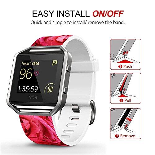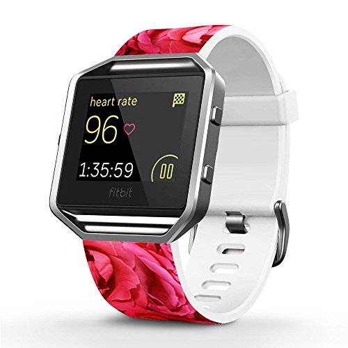 Fitbit Blaze Accessories Classic Band Large, Soft Leather Replacement Sport Strap Band with Quick Release Pins for Fitbit Blaze Smart Fitness Watch Elegant Rose Flower Pattern